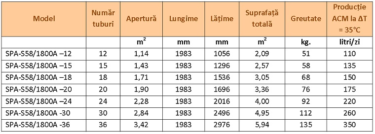 Date tehnice Panouri solare cu tuburi vidate SONTEC SPA - S58/1800A