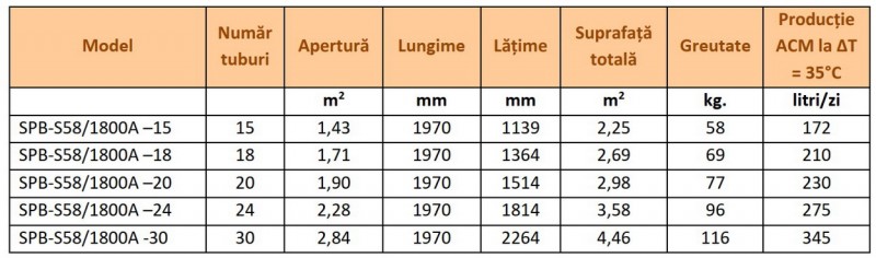 Date tehnice Panouri solare cu tuburi vidate SONTEC SPB - S58/1800A