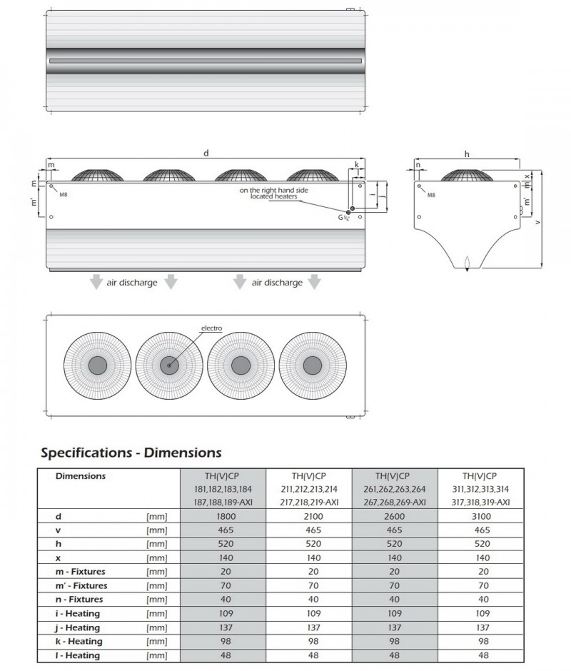 Perdea de aer pe apa orizontala/verticala STAVOKLIMA TH(V)CP-212-3-AXI TIP 2, 2100 mm, 7000 m³/h, model vopsit