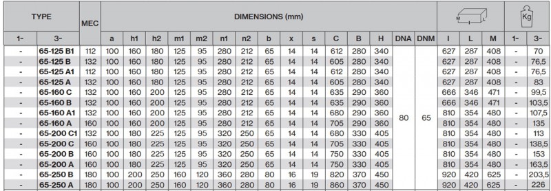 Pompa centrifuga monobloc Foras MN 65-250A, 37 kW, 90 mCA, 400 V - dimensiuni