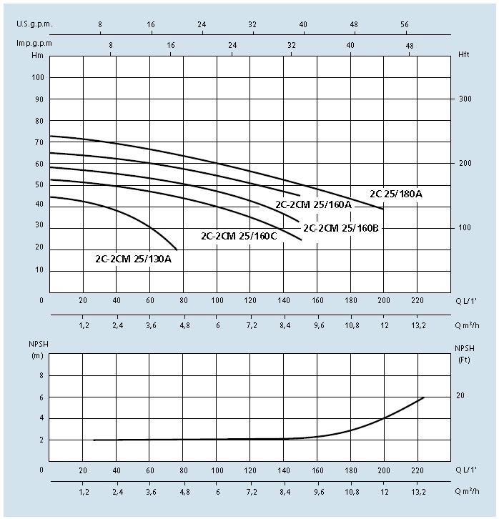 GRAFIC Pompa centrifuga SPERONI 2C 25/180A - 72 mCA: