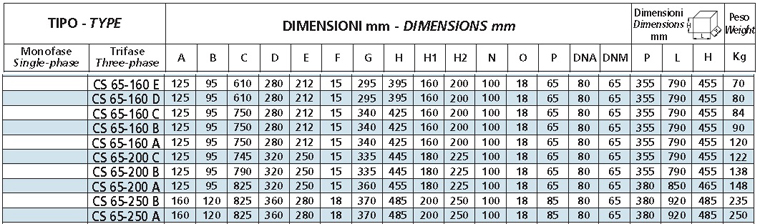DIMENSIUNI POMPA CENTRIFUGA SPERONI CS 65-160E - 25 mCA:
