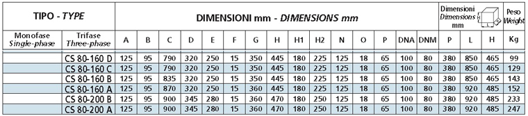 DIMENSIUNI POMPA CENTRIFUGA SPERONI CS 80-160D - 28 mCA: