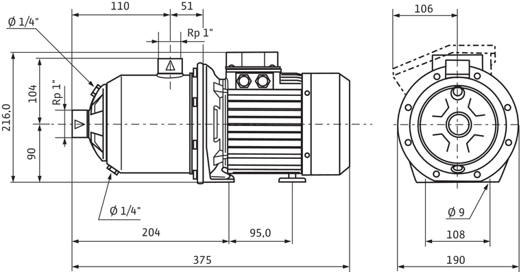 Dimensiuni Pompa centrifuga WILO ECONOMY MHI