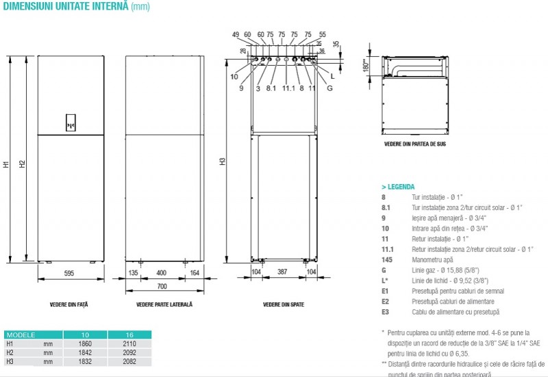**Pentru cuplarea cu unitati externe mod. 4-6 se pune la dispozitie un racord de reductie de la 3/8” SAE la 1/4” SAE pentru linia de lichid cu Ø 6,35.