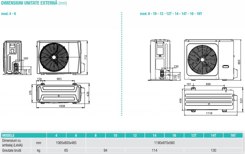 **Pentru cuplarea cu unitati externe mod. 4-6 se pune la dispozitie un racord de reductie de la 3/8” SAE la 1/4” SAE pentru linia de lichid cu Ø 6,35.