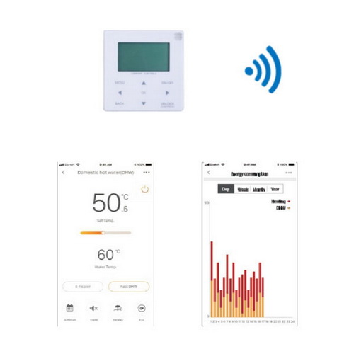 - Poate verifica starea de functionare a pompei de caldura, a comutatorului de zona, a modului de functionare si a temperaturii.