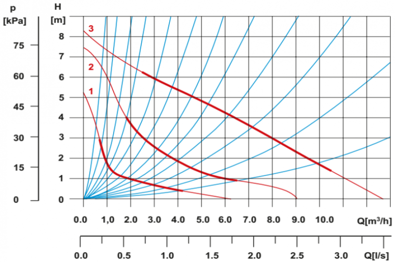 Grafic de performanta Pompa de circulatie Blautechnik 32-80 180 cu racorduri incluse