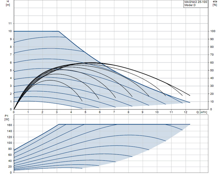 Pompa de circulatie Grundfos MAGNA3 25-100 180 PN10 - curba de functionare