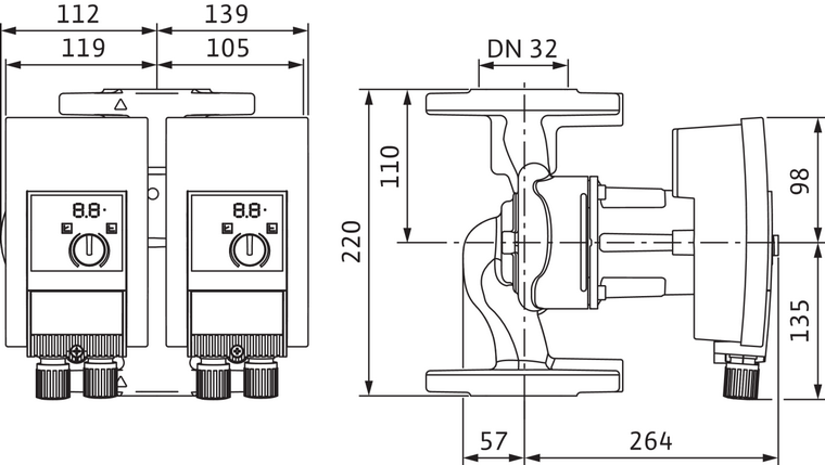 Dimensiuni Pompa de circulatie Wilo Yonos Maxo D 32/0,5-11-PN10