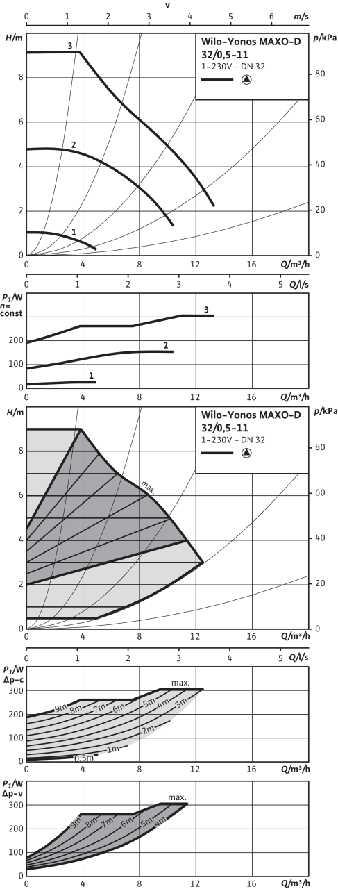 Grafic de performanta Pompa de circulatie Wilo Yonos Maxo D 32/0,5-11-PN10