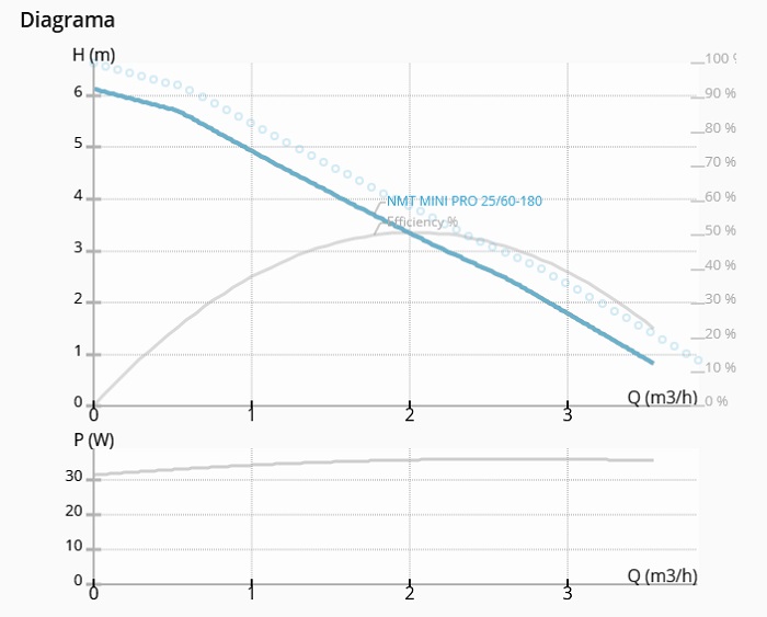 Pompa electronica de circulatie cu turatie variabila IMP PUMPS NMT MINI PRO 25/60-180 - diagrama