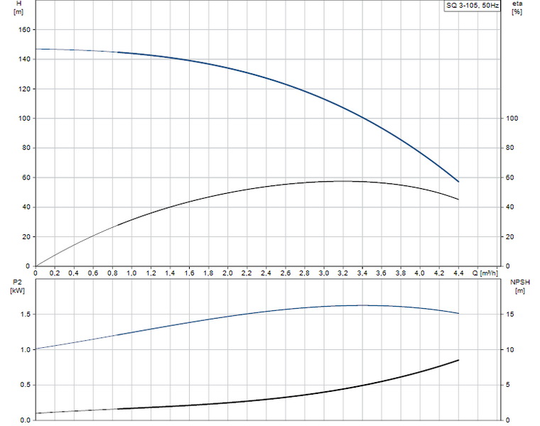 Pompa submersibila SQ 3-105 multietajata de 3" proiectata pentru alimentarea cu apa menajera, transferul de lichide in rezervoare, irigatii si aplicatii din domeniul protectiei mediului. Pompa are rotoare "inundate", fiecare cu propriul sau rulment de ceramica/carbura de wolfram.