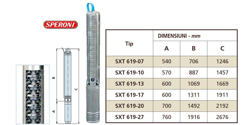 Pompa submersibila multietajata pentru put Speroni SXT 619 - dimensiuni