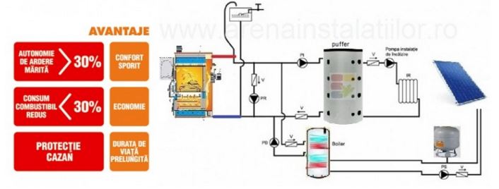- extinderea timpul de functionare a cazanului la putere nominala, tradus printr-un consum mai mic de combustibil