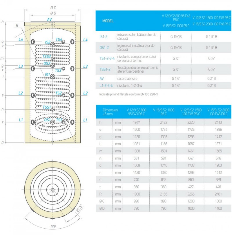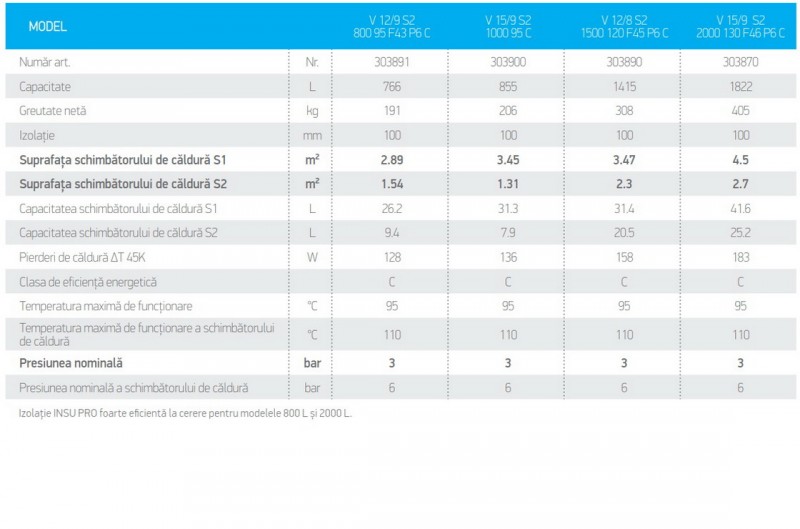 Puffer cu 2 serpentine Tesy V 15/9 S2 2000 130 F46 P6 C - 2000 litri - date tehnice