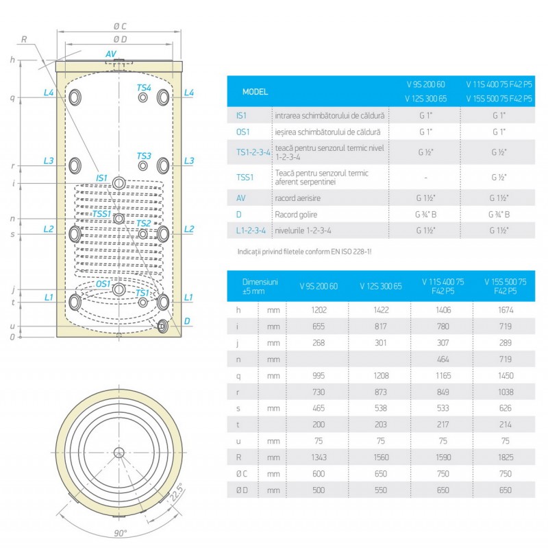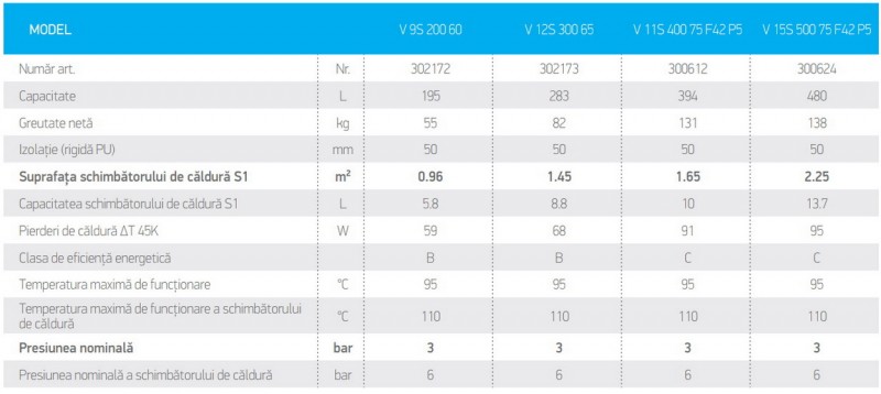 Puffer cu o serpentina TESY V 11S 400 75 F42 P5 - 400 litri date tehnice