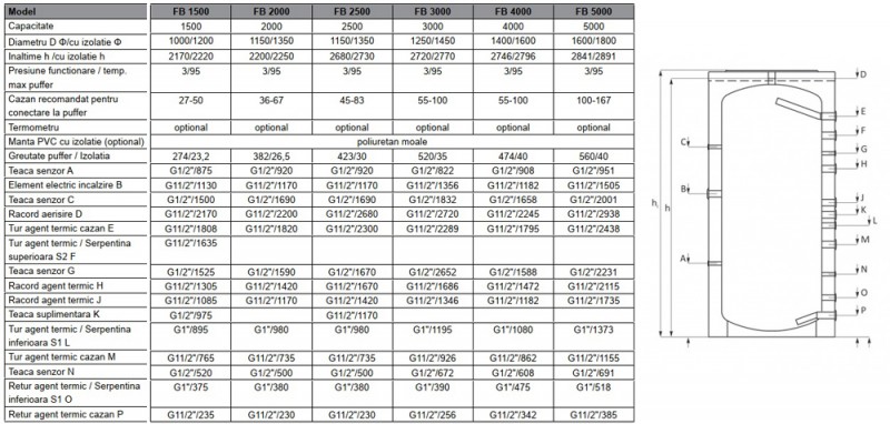 Puffer (rezervor de acumulare apa calda) FERROLI FB 2500 - caracteristici tehnice