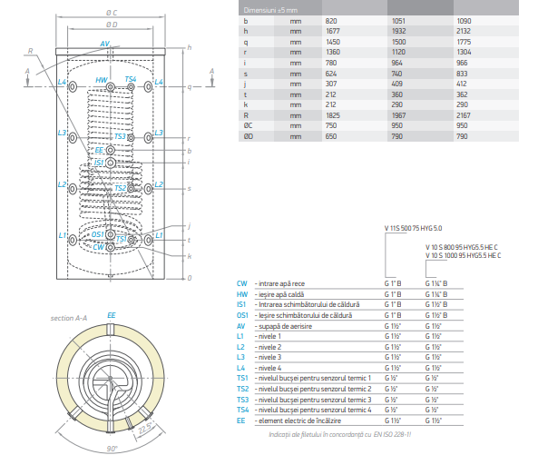 - Boiler ce combina acumularea agentului termic si productia instantanee a apei calde menajere, prevazut si cu o serpentina termica si cu orificii care ofera posibilitatea instalarii a patru senzori termici.