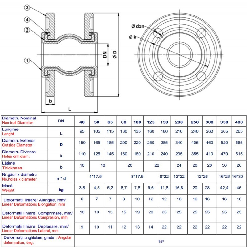 Racord antivibrant cu flanse MT Spain PN 16 MT5121 - dimensiuni