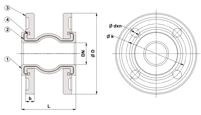 Compensator antivibrant cu flanse PN 16 DN 150