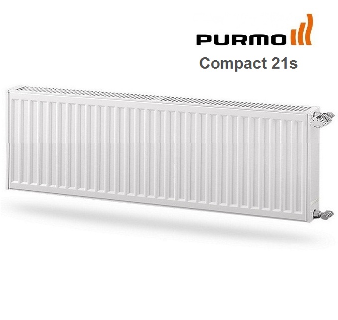 Purmo Compact tip 21 s sunt radiatoare SLIM cu o grosime de doar 70 mm. Ele au la baza o placa frontala, o placa dorsala si un singur rand cu elementi de convectie la interior. Produsul este completat de carcase laterale, iar deasupra are o protectie tip gratar. Racordarea este foarte facila, simplificata de cele patru orificii de racordare laterale amplasate in cele patru colturi ale radiatorului, toate fiind prevazute cu ghint interior de ½ toli.