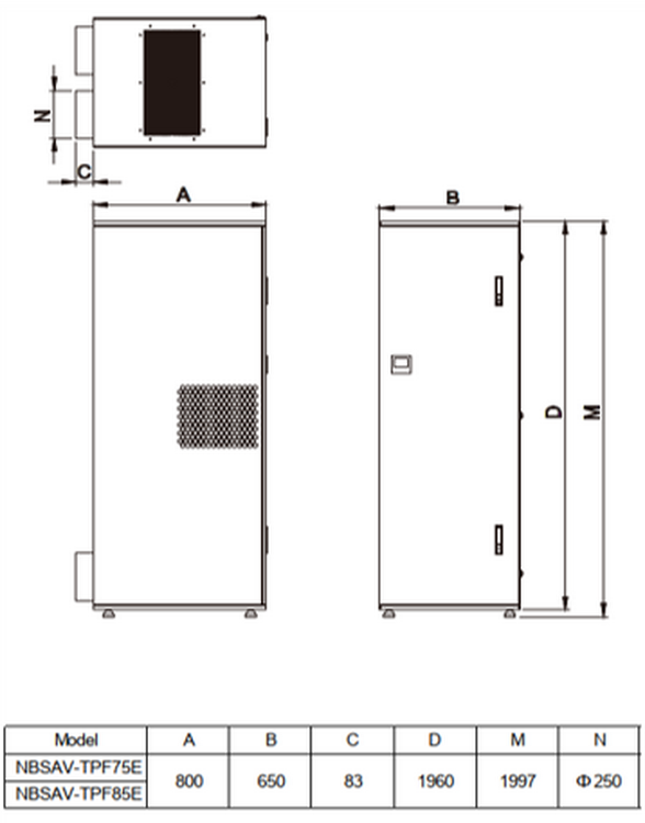 Debit de aer: pana la 750 m³/h (TPF75E) si 850 m³/h (TPF85E)