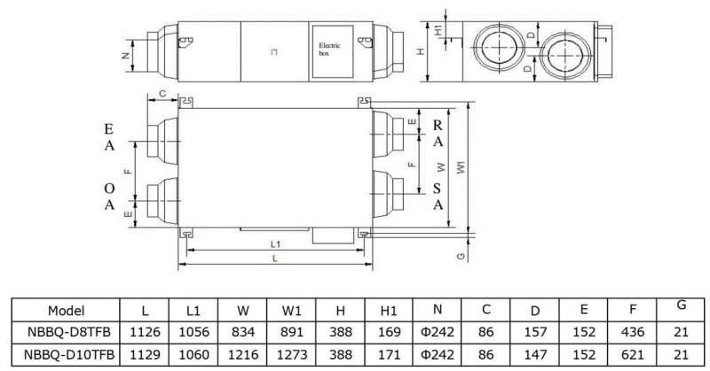Recuperator de caldura NOBUS NBBQ - dimensiuni