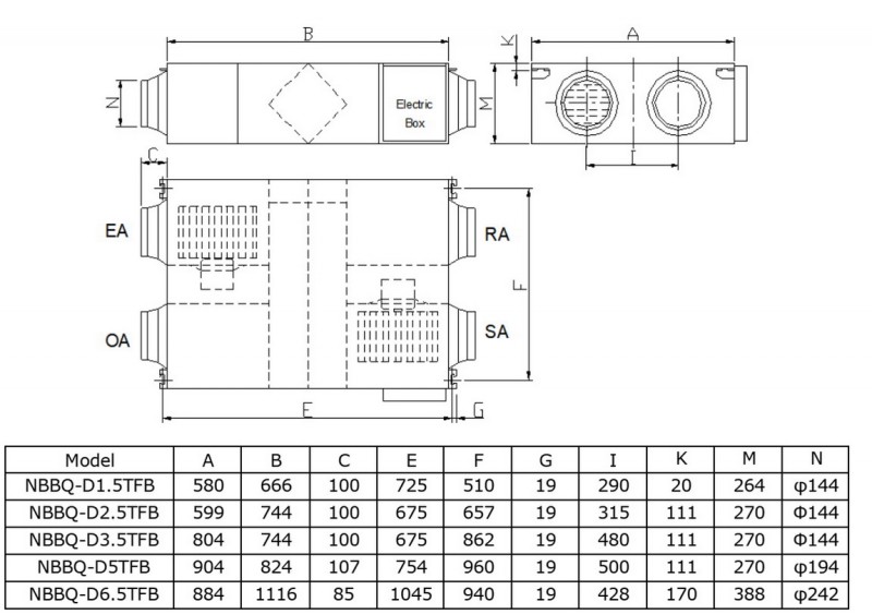 Recuperator de caldura NOBUS NBBQ - dimensiuni