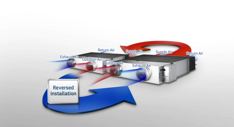 Datorita orificiilor de admisie si de evacuare de pe ambele parti, designul de ventilatie bidirectionala se bucura de eficienta exceptionala. Elementul de schimbare a caldurii are rolul de a recupera energia, in timp ce elimina impuritatile emise.