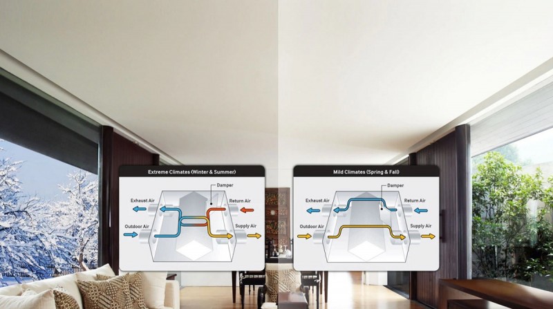 ERV isi modifica automat modul de functionare, in baza diferentei de temperatura dintre mediul dvs. interior si exterior, pentru a economisi energie.