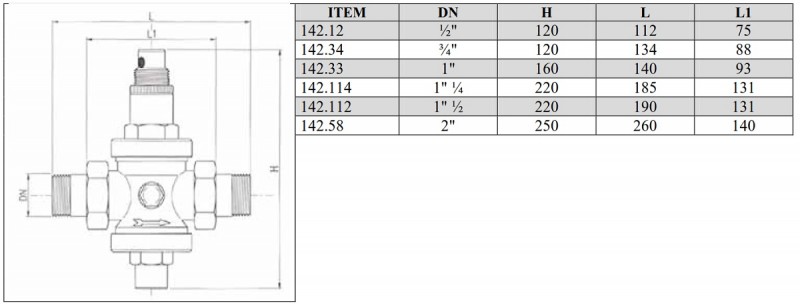 Reductor de presiune corp alama AIRAGA EUROBRASS 142.GV - 3/4