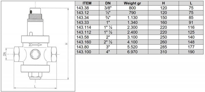 Reductor de presiune corp alama AIRAGA EUROBRASS 143.GV - 1