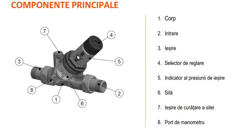 - Reglaj presiune iesire: 1,5 – 6 bar