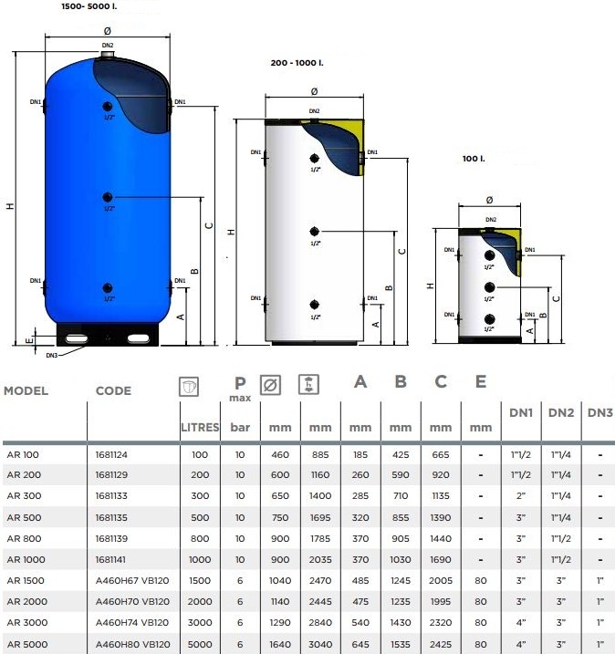 Dimensiuni Rezervor izolat apa racita ELBI AR 1500: