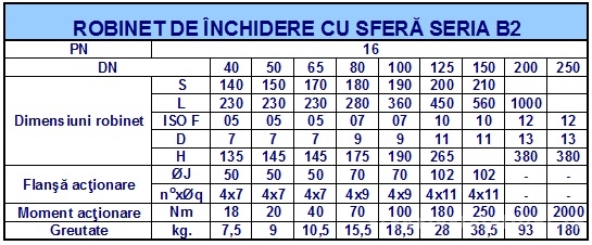 Dimensiunirobinet fonta cu sfera si flanse BRANDONI