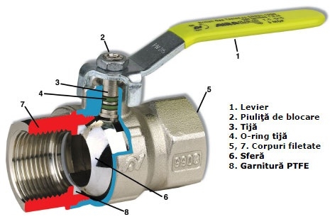 Garnituri corp-sfera: PTFE, duritate 55-60 Shore D