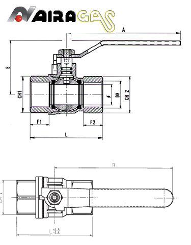 Date tehnice Robinet sferic pt gaz AIRAGA AIR331 PN16 - 1 1/2 FI-FI