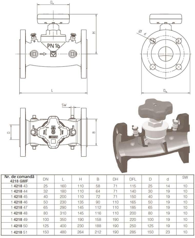 HERZ STROMAX 4218 GMF sunt robinete de reglare debit coloane cu prize de presiune si posibilitate de golire (prin montarea unui robinet de golire, care se comanda separat).