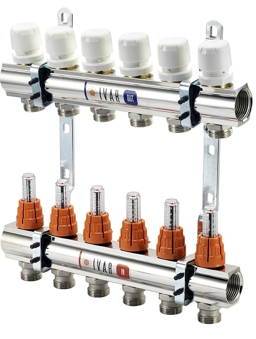 Fotografia produsului Set distribuitor tur/retur cu debitmetru IVAR 1 x EK - 4 cai are caracter orientativ si poate contine accesorii ce nu sunt incluse in pachetul standard al produsului.