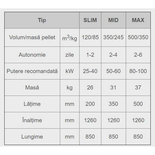 - Volum/masa pellet: 120/85 litri/kg