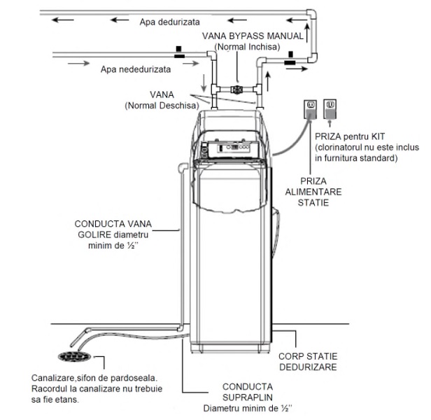 Schema de instalare statie de dedurizare Ferroli SWEET WATER: