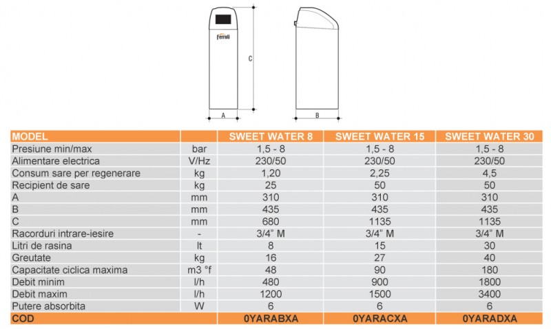 Statie de dedurizare monobloc Ferroli Sweet Water 30