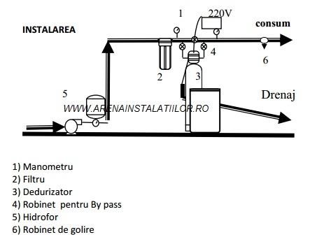 - Debitul maxim este dat de debitul valvei. Debitul maxim de apa dedurizata este in stransa legatura cu cantitatea de rasina si duritatea remanenta (duritatea ce ramane in apa dupa trecerea prin statie), la debitele indicate in tabel, duritatea remanenta este 0 grade.