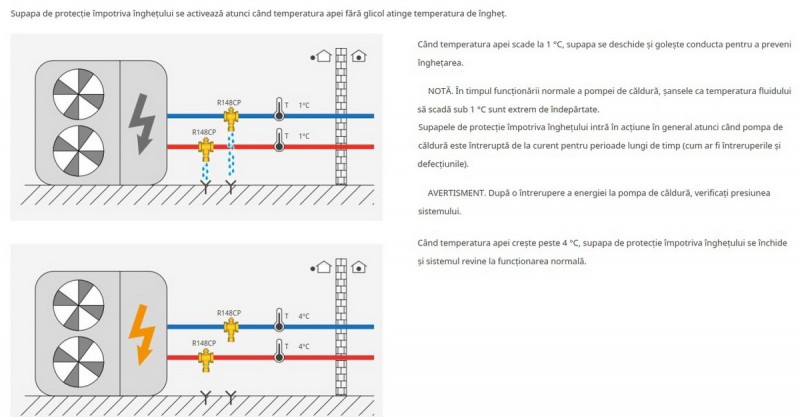 Ventil protectie anti-inghet este proiectat sa functioneze cu agent termic fara continut de glicol.
