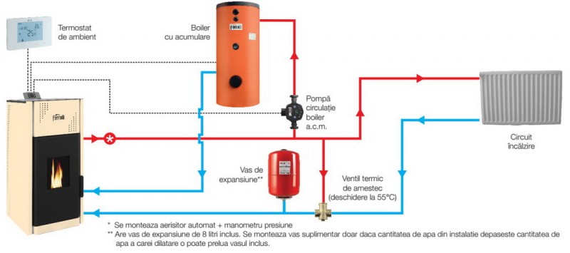 Racordare Termosemineu pe peleti Ferroli Mirano Pellet Pro