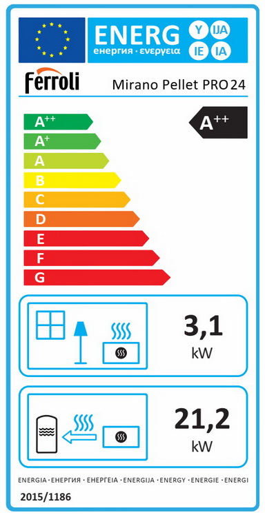 Termosemineu pe peleti Ferroli Mirano Pellet Pro 24 - 24 kW, panou de comanda digital, programator