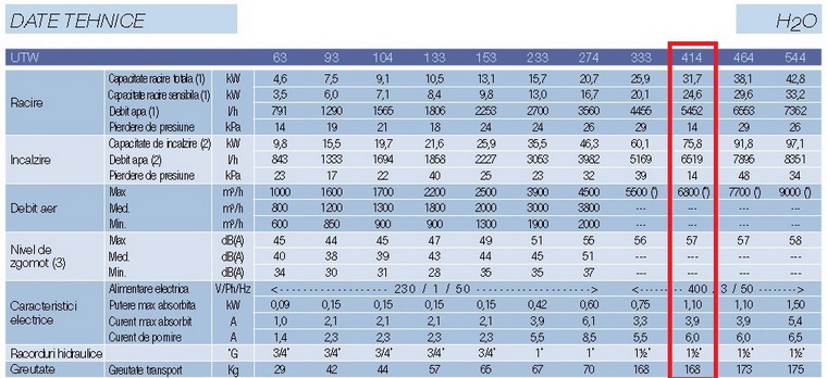 Performanta Ventiloconvector de tubulatura cu disponibil mare de presiune CLINT UTW 414 - 31.7 kW racire, 75.8 kW incalzire