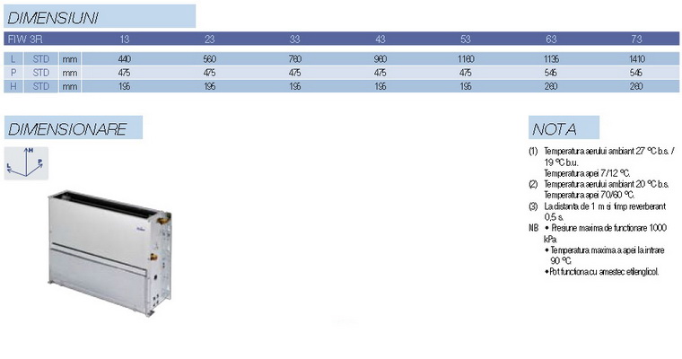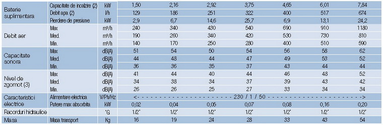 3.Debitul de aer este exprimat la viteza maxima a ventilatorului.