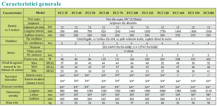 Date tehnice Ventiloconvector necarcasat de tavan EVOCLIMA FC3-110: